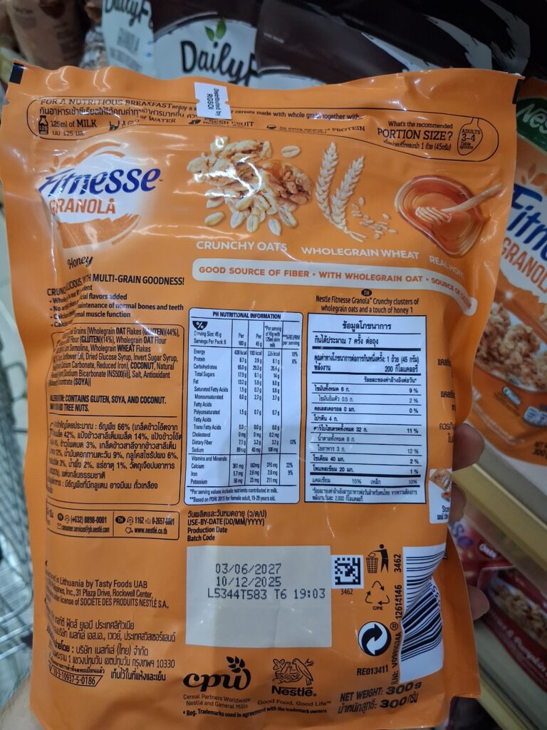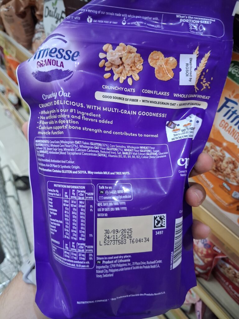 Nestle Fitnesse Honey₱210.00300g₱0.7045g3.2g0.101g46% Oats, Whole Wheat