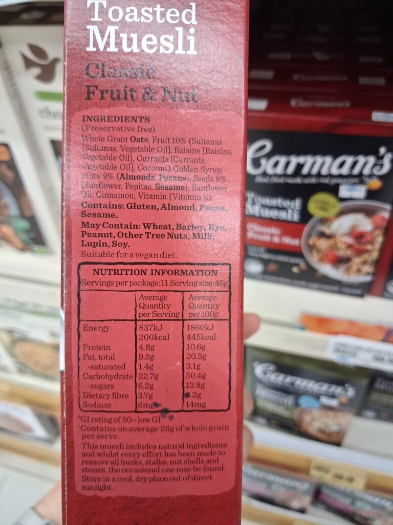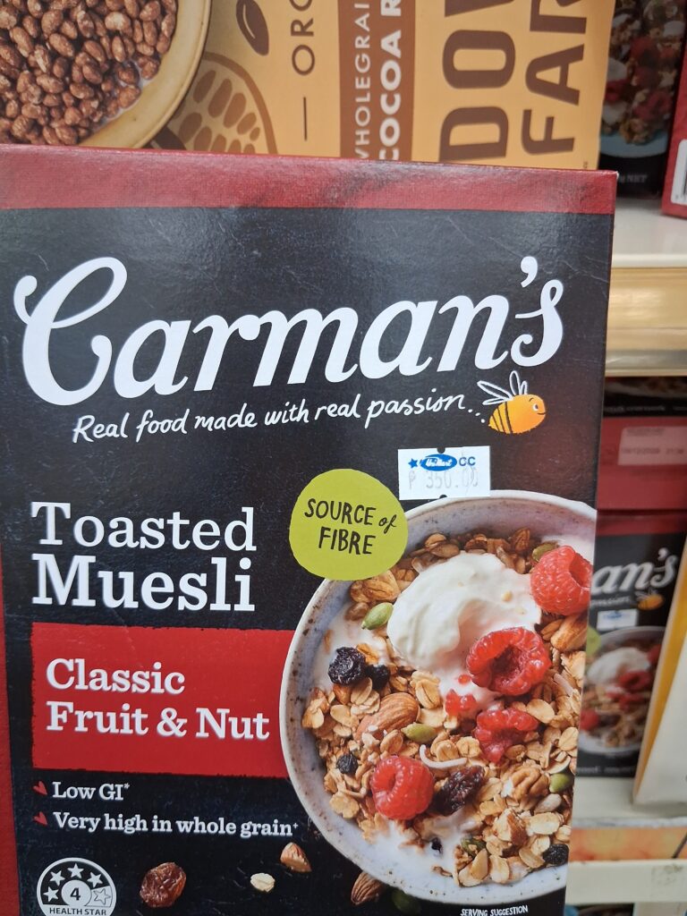 Carman’s Classic (Fruit & Nut)₱350.00500g₱0.7045g3.7g0.117gOats, 10% Fruit, 9% Nuts, 8% Seeds